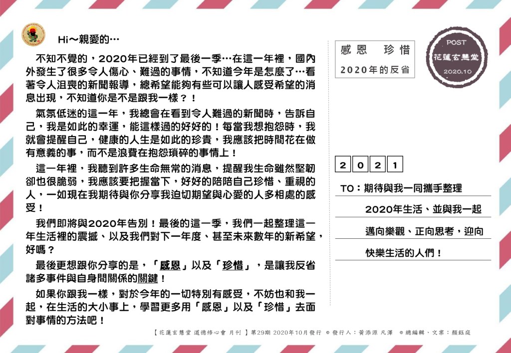 【花蓮玄慧堂 道德修心會 月刊】第20期~第31期(2020年出版)