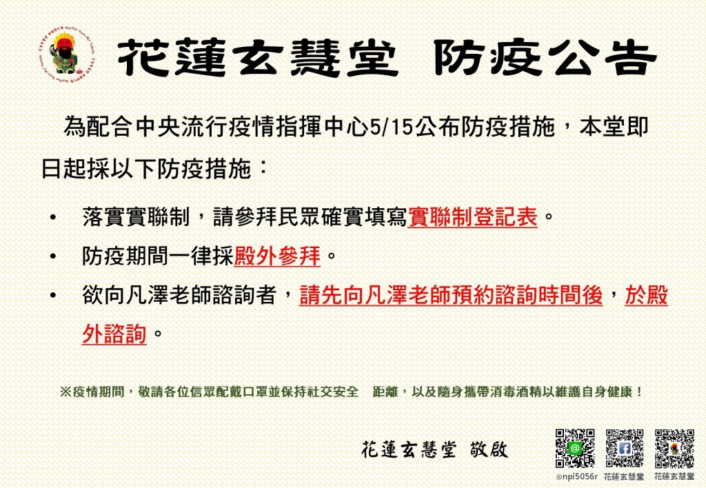 花蓮玄慧堂 感恩 祝福 各位大德平安順心