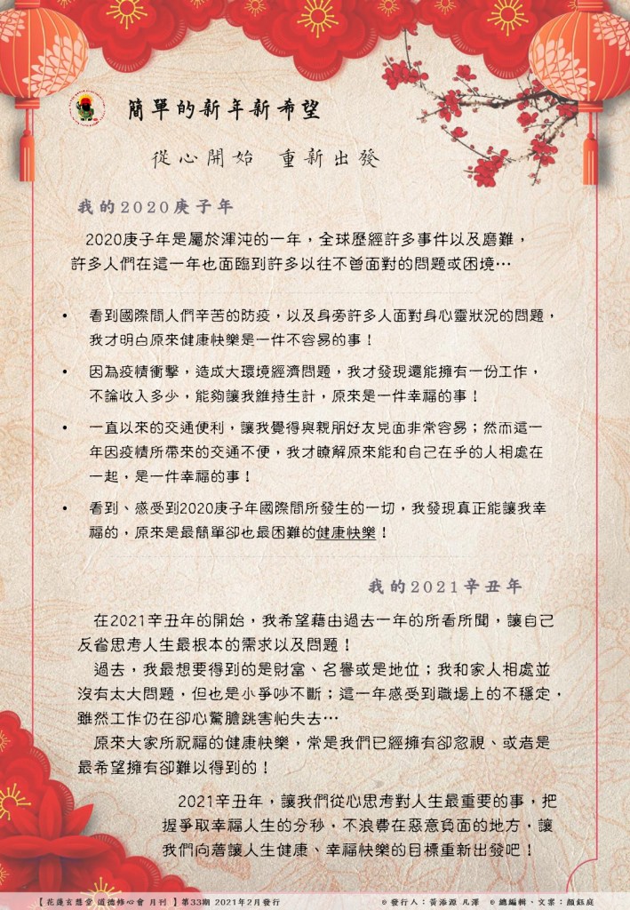 【花蓮玄慧堂 道德修心會 月刊】第33期